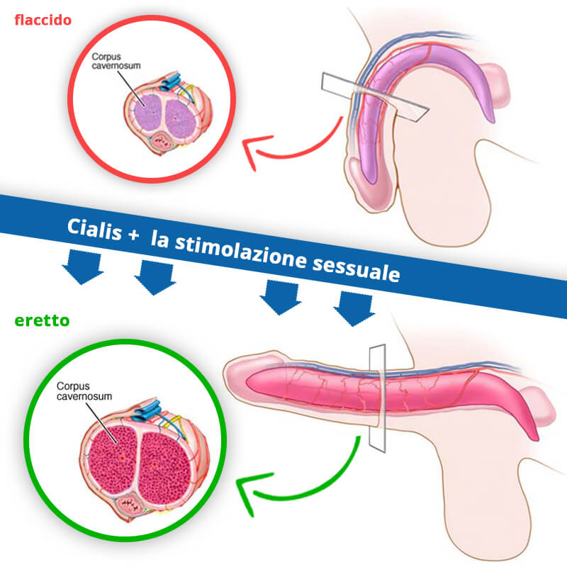 Agisce provocando un rilassamento della muscolatura liscia dei vasi sanguigni e aumentando così la circolazione del sangue nel pene. In questo modo viene favorita l’erezione ed aumentata la sua durata. Affinché Cialis possa essere completamente effettivo, è necessaria la stimolazione sessuale.